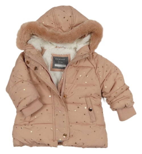 Svetloružová šušťáková zimná bunda s hviezdičkami a kapucňou Primark