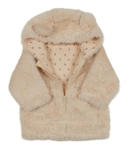 Svetloružová kožušinová podšitá bunda s kapucňou