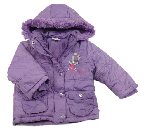 Fialová šušťáková zimná bunda s andílkem a kapucňou