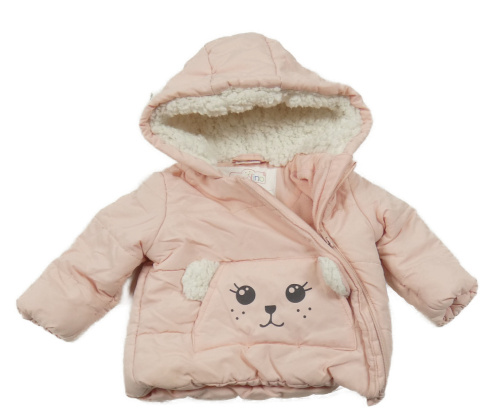 Svetloružová šušťáková zateplená bunda s medvěďom a kapucňou