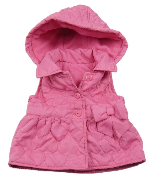Ružová prešívaná šušťáková podšitá vesta s mašlou a kapucňou Matalan