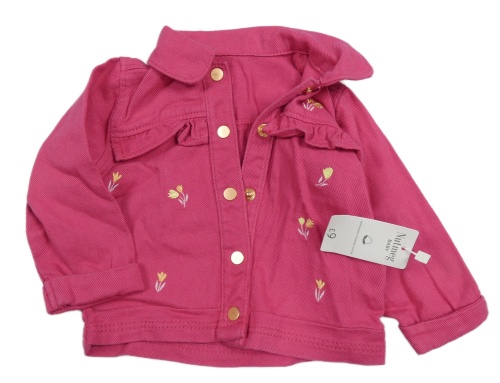 Nové - Fuchsiová rifľová bunda s kvietkami Nutmeg