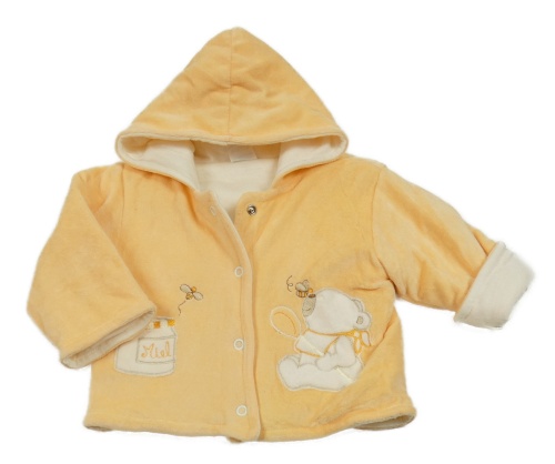 • Světleoranžový sametový zateplený kabátek s medvedíkom a včelkami a kapucňou
