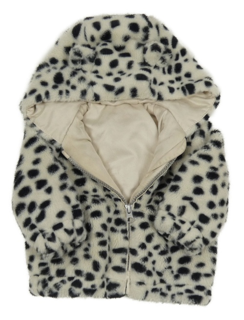 Smetanovo-čierna vzorovaná chlpatá zateplená bunda s kapucňou Nutmeg