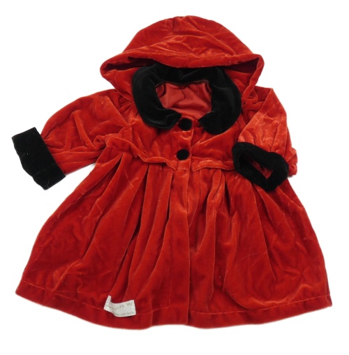 Červený sametový lehký propínací kabátek s kapucňou