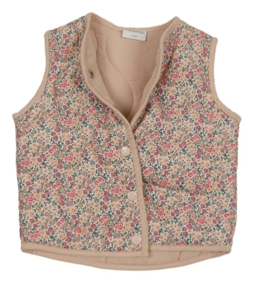 Svetloružová kvetovaná šušťáková prešívaná zateplená vesta F&F