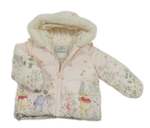 • Svetloružová šušťáková zimná bunda s Medvídkem Pú a kamarády a kapucňou George