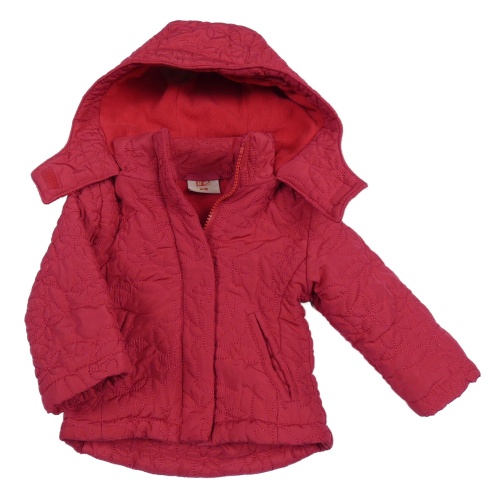 Malinová šušťáková prechodná bunda s prešívanými kvietkami a kapucňou
