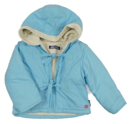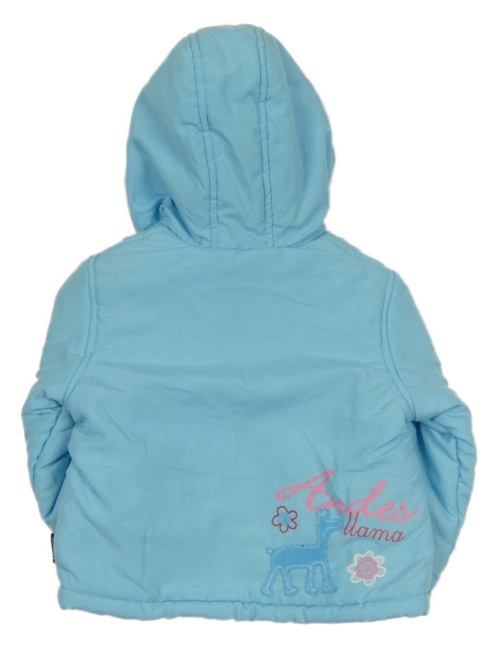 Svetlomodrá šušťáková zateplená bunda s lamou a kapucňou