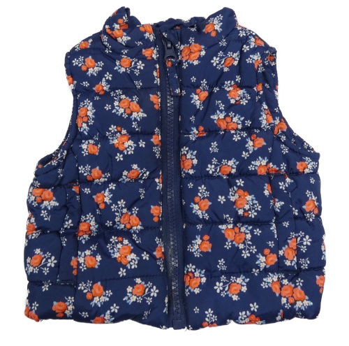 Tmavomodrá prešívaná šušťáková zateplená vesta s růžemi Mothercare