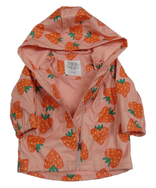 Ružová nepromokavá jarná bunda s jahodami a kapucňou F&F