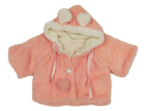 Ružová kožušinová zateplená bunda s kapucňou a bambulemi