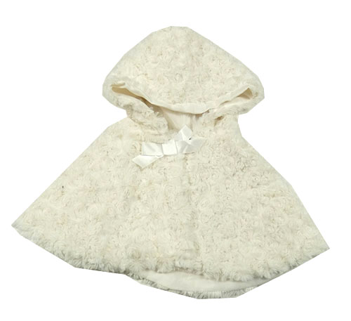 Krémové kožušinové podšité pončo s mašlou a kapucňou