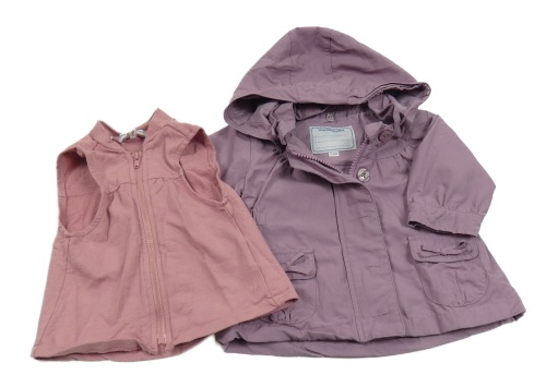 • 3v1 - Fialová plátenná jarná bunda s kapucí + staroružová tepláková vesta Vertbaudet