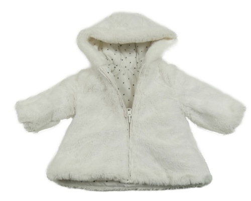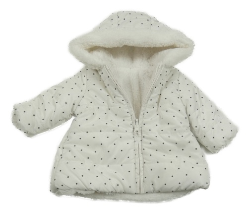 • Biela bodkovaná á prešívaná šušťáková zimná obojstranná bunda s kapucňou s kožešinou Chicco