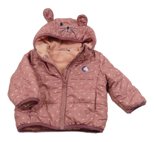 • Staroružová šušťáková zateplená bunda so srdiečkami a kapucňou Liegelind