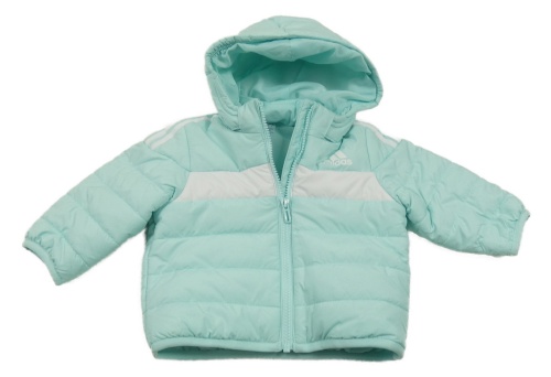• Mátovo-biela šušťáková zateplená bunda s logom a kapucňou Adidas