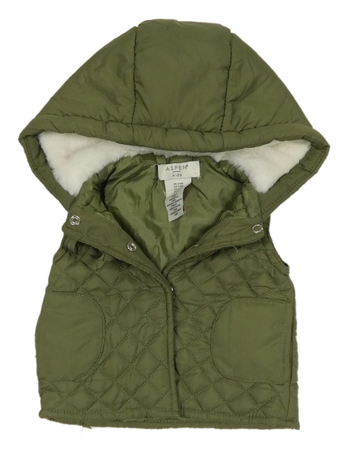 Khaki šušťáková zateplená vesta s kapucňou