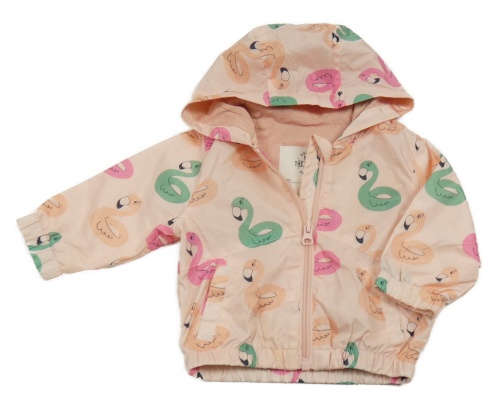 Svetloružová šušťáková jarná bunda s ptáky a kapucňou M&S