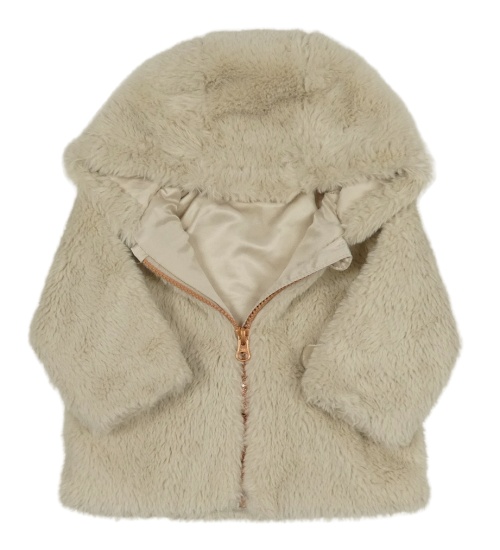 Smotanová kožušinová zateplená parka s mašľami a kapucňou Nutmeg