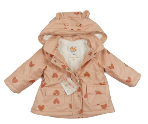 Nové - Ružová nepromokavá zateplená bunda so srdiečkami a kapucňou