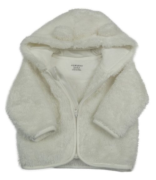Biela chlpatá bunda s kapucňou s uškami PRIMARK