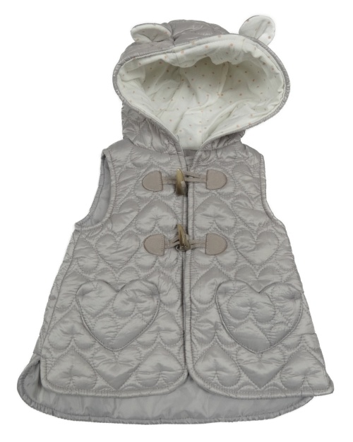 Sivá šušťáková zateplená vesta s prešívanými srdiečkami a kapucňou s uškami TAHARI