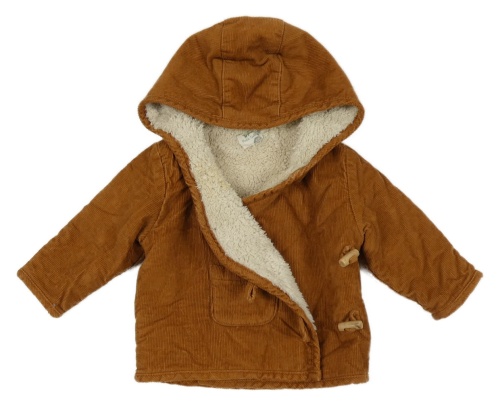 Hnědý zateplený manšestrový kabátek s kapucňou Topolino