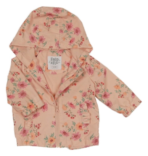 Broskvová šušťáková jarná bunda s kvietkami a kapucňou F&F