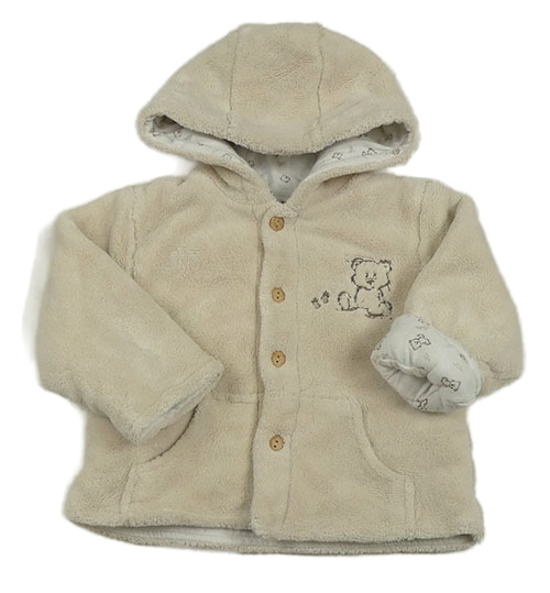 • Světlebéžový plyšový zateplený kabátek s medvedíkom a kapucňou C&A