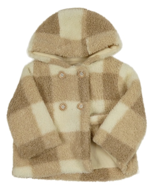 Béžovo-biela kockovaná huňatá zateplená bunda s kapucňou Nutmeg