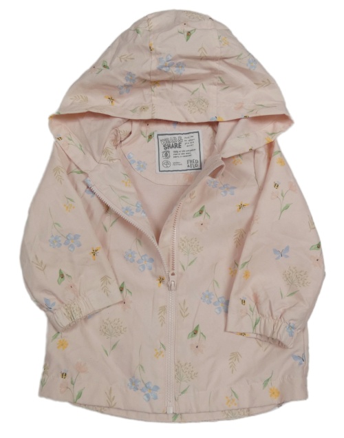 • Svetloružová šušťáková jesenná bunda s kvietkami a včelkami a kapucňou F&F