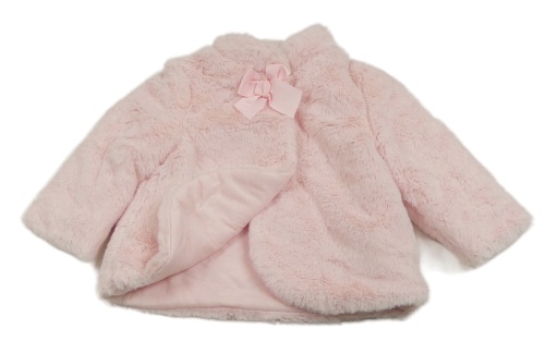 Světlerůžový chlupatý podšitý kabátek s mašličkou