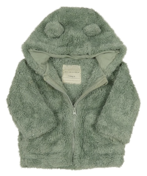 • Olivová chlpatá bunda s kapucňou s uškami Tu