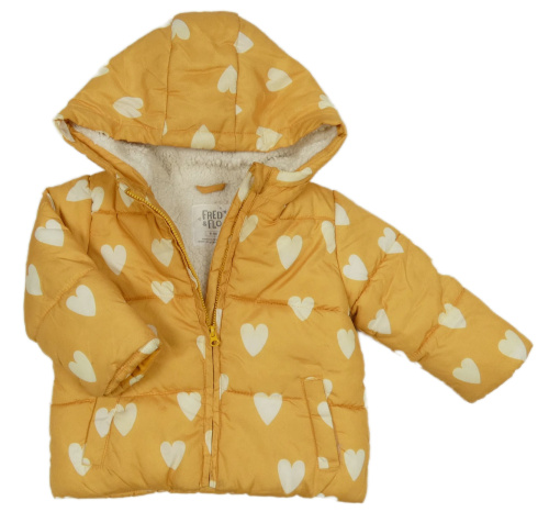 Okrová srdiečkovaná šušťáková zimná bunda s kapucňou F&F