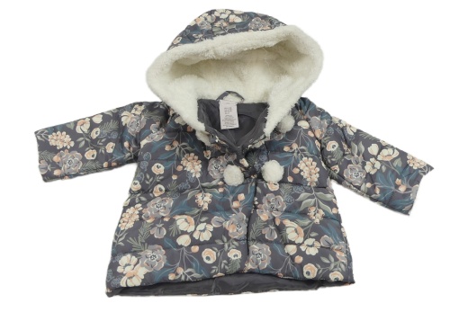 Tmavosivá kvetovaná šušťáková zimná bunda s kapucňou