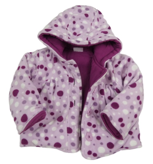 Lila fleecový zateplený kabátek s bodkami a kapucňou Cherokee