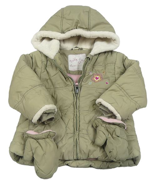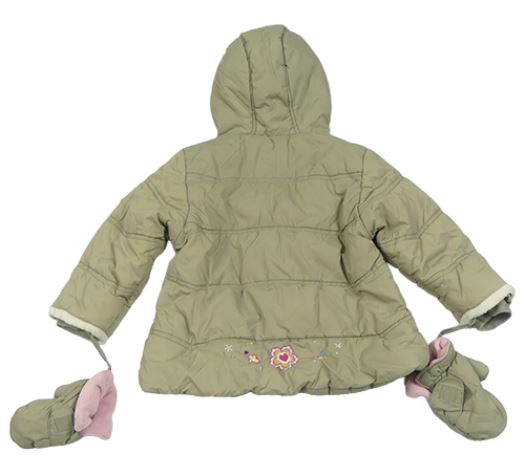 Khaki šušťáková zimná bunda s kvietkami a kapucí + rukavice