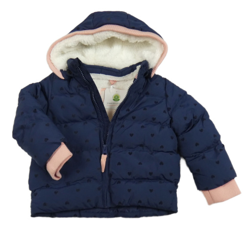 Tmavomodro-svetloružová šušťáková zimná bunda s bodkami a kapucňou Topolino