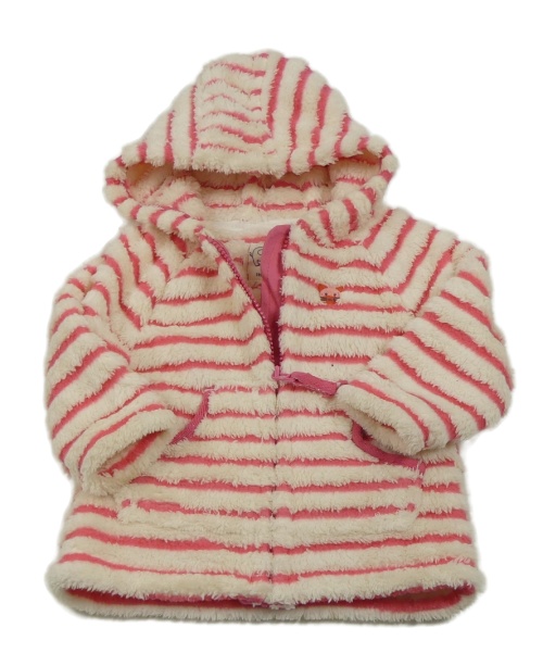 Smetanovo-ružová pruhovaná chlpatá bunda s mačičkou a kapucňou Next