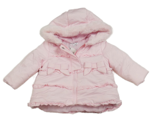 • Nové - Svetloružová šušťáková zimná bunda s mašľami a kapucňou Blues Baby