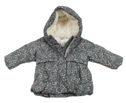 Nové - Sivá kvetovaná šušťáková zimná bunda s kapucňou Topomini