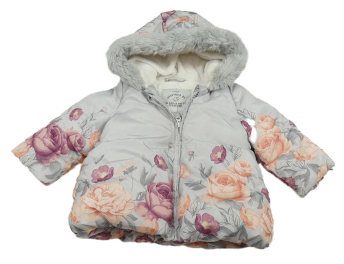 Sivá chlpatá zimná bunda s kvetmi a kapucňou George