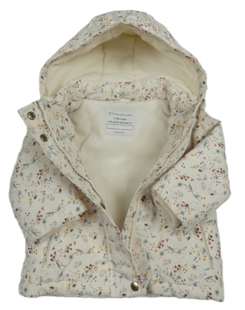 Biela kvetinová šušťáková zimná bunda s kapucňou Primark