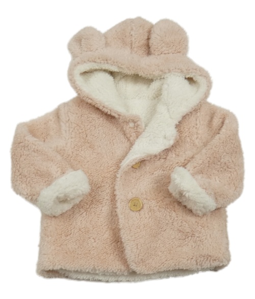Světlerůžový huňatý zateplený kabátek s kapucňou s uškami Matalan
