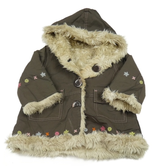 Hnedý šušťákový zateplený kabát s kvietkami a kapucňou