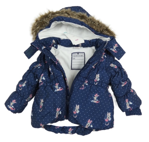 • Nové - Tmavomodrá bodkovaná á šušťáková zimná bunda s Minnie a kapucňou s kožešinou Disney