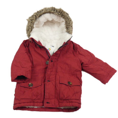Nové - Vínová šušťáková zimná bunda s kapucňou s kožešinou Topomini