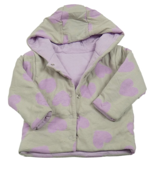 Šedý bavlněný zateplený kabátek so srdiečkami a kapucňou Dunnes