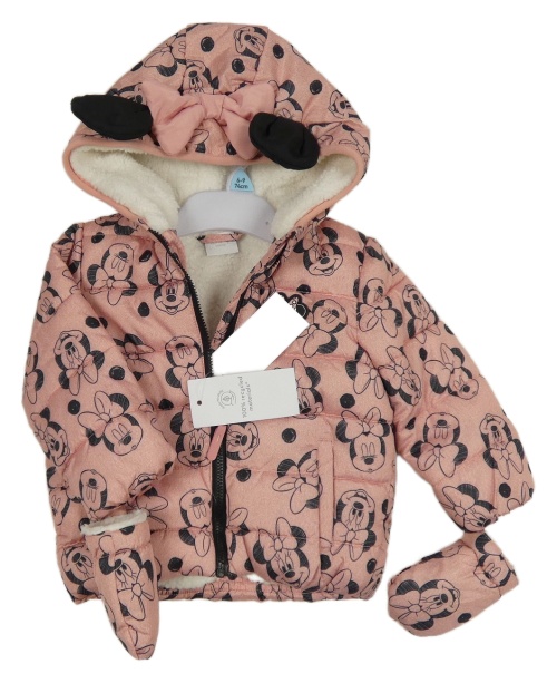 -Nové Ružová šušťáková zimná bunda s Minnie a kapucí+ rukavice Disney